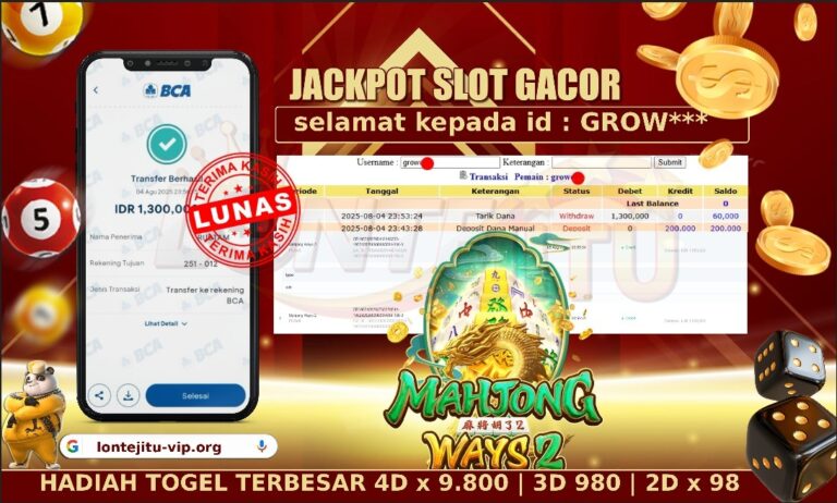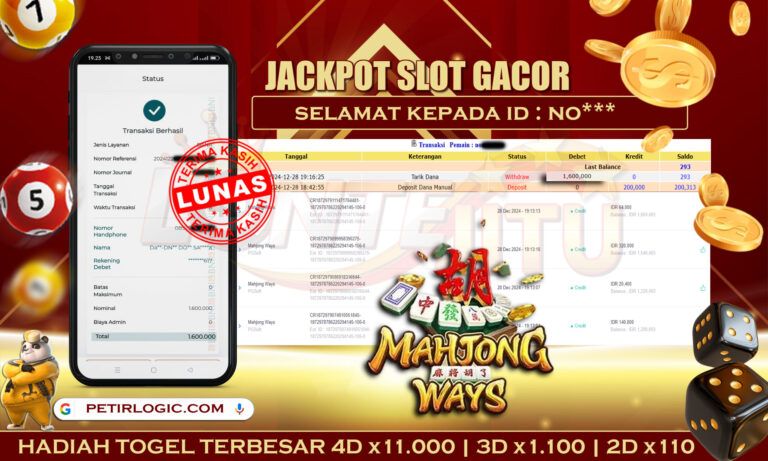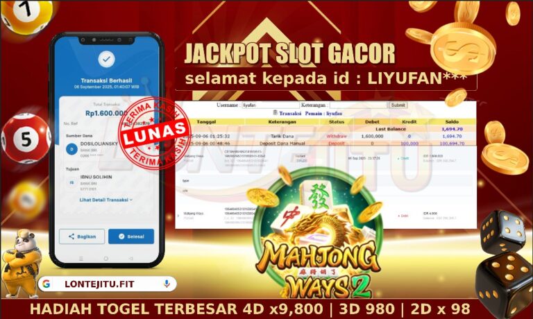 Bukti JP SLOT MAHJONG WAYS – Kami mengucapkan selamat kepada bossku Username ID MANIK** atas kemenangan di permainan SLOT MAHJONG WAYS dengan total kemenangan sebesar Rp.1,000.000,00,- Kemenangan ini yang pastinya sudah dibayar LUNAS sesuai dengan bukti ya bossku. Lontejitu nih boss, berapapun kemenangan anda akan tetap kami bayar sampai tuntas ya boss. Disini kami mengucapkan Terimakasih telah…