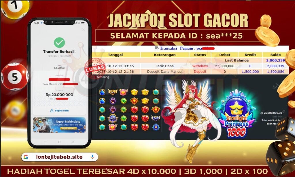 Bukti JP SLOT STARLIGHT PRINCESS 1000 – Kami mengucapkan selamat kepada bossku Username ID SAMS*** atas kemenangan di permainan SLOT STARLIGHT PRINCESS 1000 dengan total kemenangan sebesar Rp.23,000.000,00,- Kemenangan ini yang pastinya sudah dibayar LUNAS sesuai dengan bukti ya bossku. Lontejitu nih boss, berapapun kemenangan anda akan tetap kami bayar sampai tuntas ya boss. Disini kami mengucapkan…