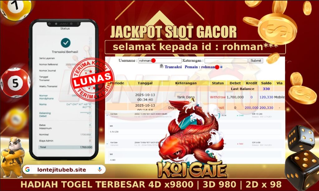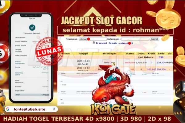 Bukti JP SLOT ANUBIS WRATH – Kami mengucapkan selamat kepada bossku Username ID ROHMAN*** atas kemenangan di permainan SLOT KOI GATE dengan total kemenangan sebesar Rp.1,700.000,00,- Kemenangan ini yang pastinya sudah dibayar LUNAS sesuai dengan bukti ya bossku. Lontejitu nih boss, berapapun kemenangan anda akan tetap kami bayar sampai tuntas ya boss. Disini kami mengucapkan Terimakasih telah…