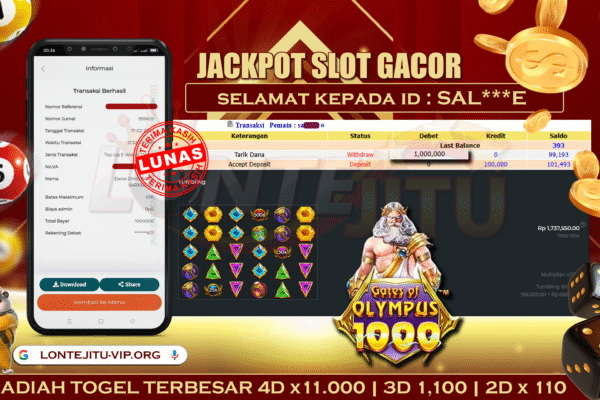 Bukti JP SLOT WILD BANDITO – Kami mengucapkan selamat kepada bossku Username ID KAN*****7 atas kemenangan di permainan SLOT WILD BANDITO dengan total kemenangan sebesar Rp.1.000.000,00,- Kemenangan ini yang pastinya sudah dibayar LUNAS sesuai dengan bukti ya bossku. Lontejitu nih boss, berapapun kemenangan anda akan tetap kami bayar sampai tuntas ya boss. Disini kami mengucapkan Terimakasih telah…