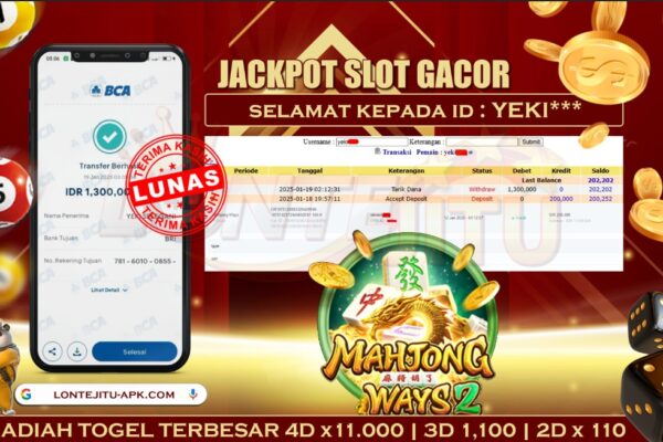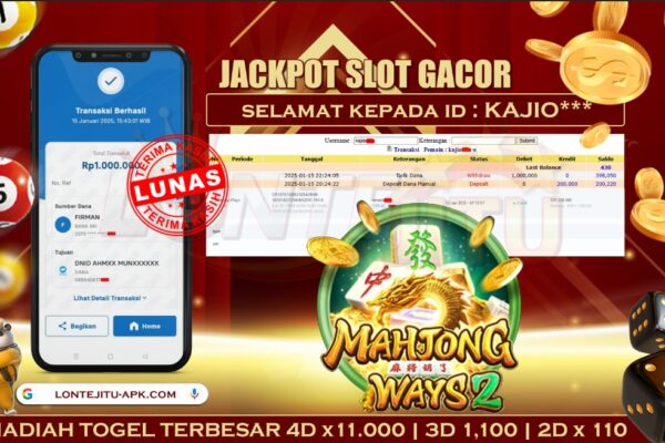 Bukti JP SLOT GATES OF OLYMPUS – Kami mengucapkan selamat kepada bossku Username ID PC** atas kemenangan di permainan SLOT GATES OF OLYMPUS dengan total kemenangan sebesar Rp. 1,000.000,00,- Kemenangan ini yang pastinya sudah dibayar LUNAS sesuai dengan bukti ya bossku. Lontejitu nih boss, berapapun kemenangan anda akan tetap kami bayar sampai tuntas ya boss. …