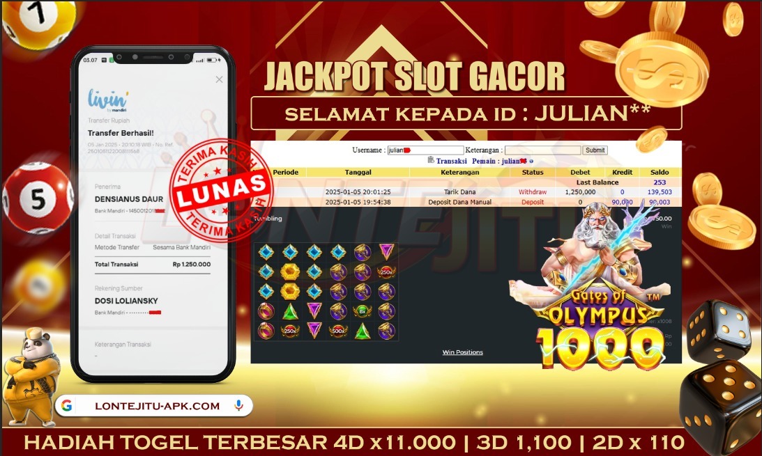 Bukti JP SLOT GATES OF OLYMPUS 1000 – Namun, yang kami posting ini sah dan real tanpa merekayasa yah dan hanya bertujuan untuk meningkatkan kepercayaan para member kami dan memberikan kenyamanan saat melakukan taruhan di situs kami, Jadi bosku tidak perlu khawatir BERAPAPUN KEMENANGAN KALIAN PASTI DIBAYAR LUNAS !! . Teman – teman sekalian sudah daftar di LONTEJITU belum yah..?, Jika belum jangan tunggu lagi, ayo segera daftarkan dan mainkan game SLOT GACOR kami yang sedang ONFIRE ini bisa jadi saudara / saudara salahsatu orang beruntung yang akan JP PAUS berikutnya nih!!.