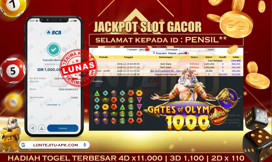 SLOT GATES OF OLYMPUS 1000 – BUKTI JP LONTEJITU 14 DESEMBER 2024