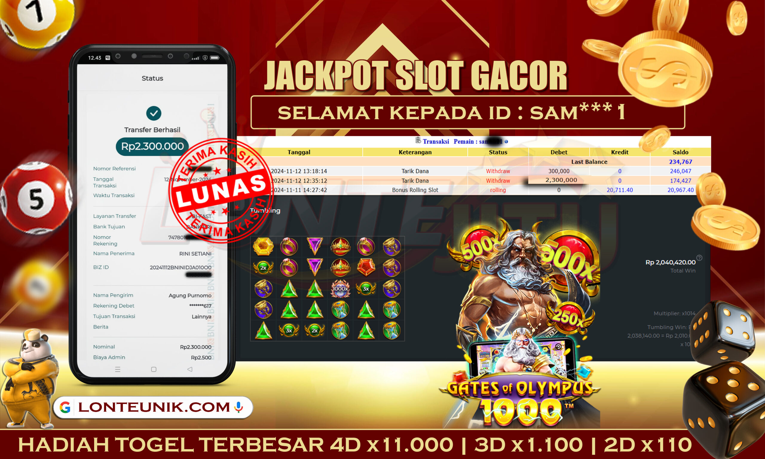 Bukti JP SLOT GATES OF OLYMPUS 1000 – Namun, yang kami posting ini sah dan real tanpa merekayasa yah dan hanya bertujuan untuk meningkatkan kepercayaan para member kami dan memberikan kenyamanan saat melakukan taruhan di situs kami, Jadi bosku tidak perlu khawatir BERAPAPUN KEMENANGAN KALIAN PASTI DIBAYAR LUNAS !! . Teman – teman sekalian sudah daftar di LONTEJITU belum yah..?, Jika belum jangan tunggu lagi, ayo segera daftarkan dan mainkan game SLOT GACOR kami yang sedang ONFIRE ini bisa jadi saudara / saudara salahsatu orang beruntung yang akan JP PAUS berikutnya nih!!.
