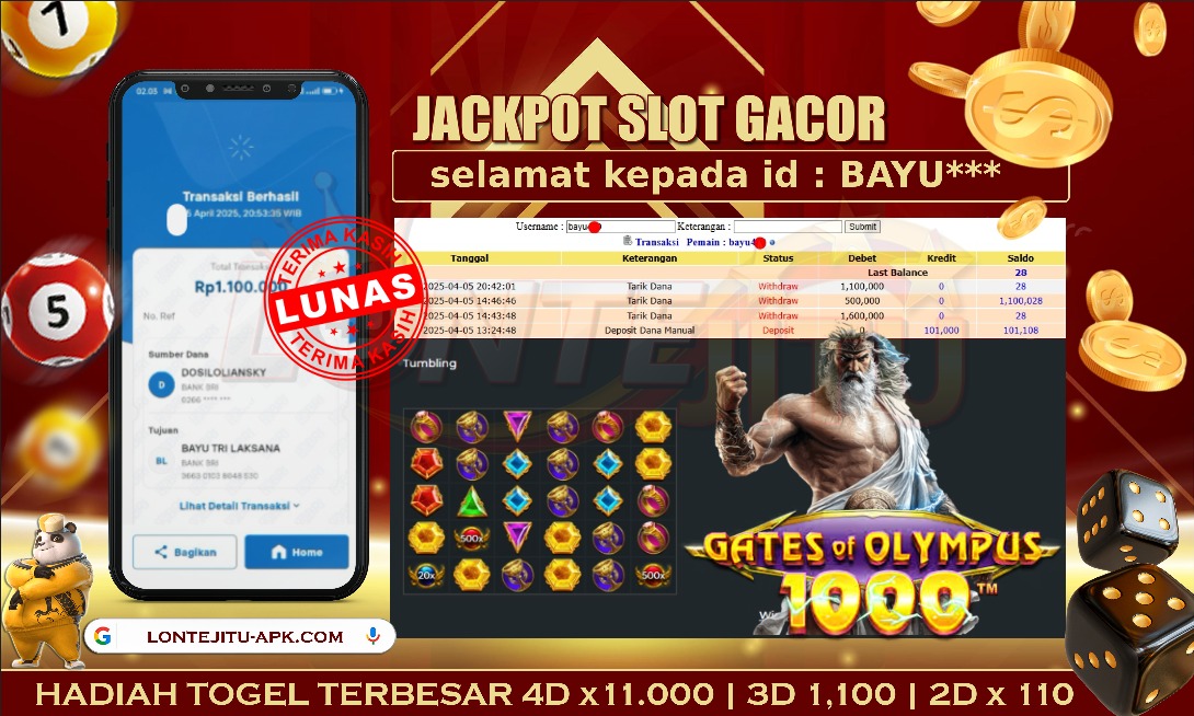 • SLOT GATES OF OLYMPUS 1000 – LONTEJITU 06 APRIL 2025