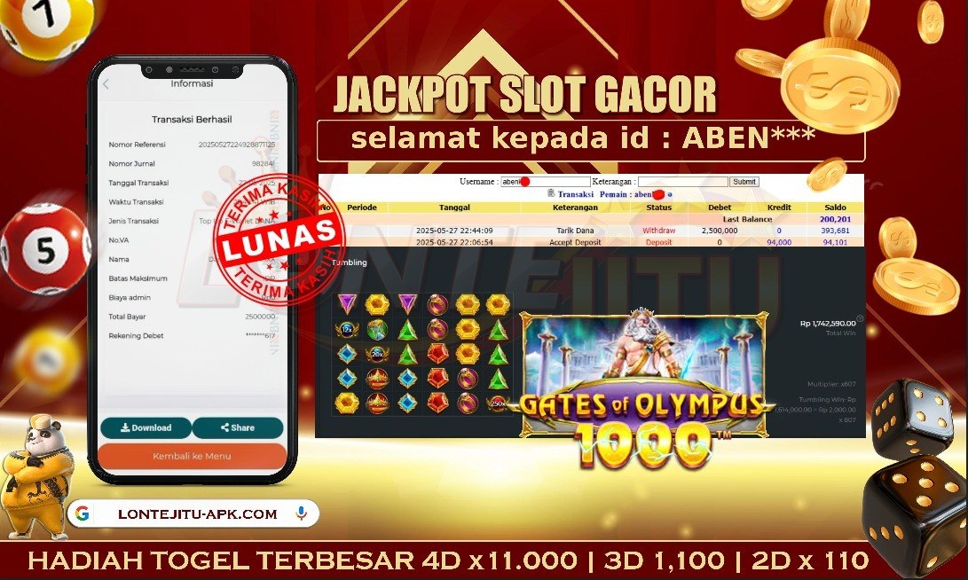 Bukti JP SLOT GATES OF OLYMPUS 1000 – Namun, yang kami posting ini sah dan real tanpa merekayasa yah dan hanya bertujuan untuk meningkatkan kepercayaan para member kami dan memberikan kenyamanan saat melakukan taruhan di situs kami, Jadi bosku tidak perlu khawatir BERAPAPUN KEMENANGAN KALIAN PASTI DIBAYAR LUNAS !!!. Teman – teman sekalian sudah daftar di LONTEJITU belum yah..?, Jika belum tunggu apa lagi, ayo segera daftarkan dan mainkan game SLOT GACOR kami yang sedang ONFIRE ini bisa jadi saudara / saudara salah satu orang beruntung yang akan JP PAUS berikutnya nih!.