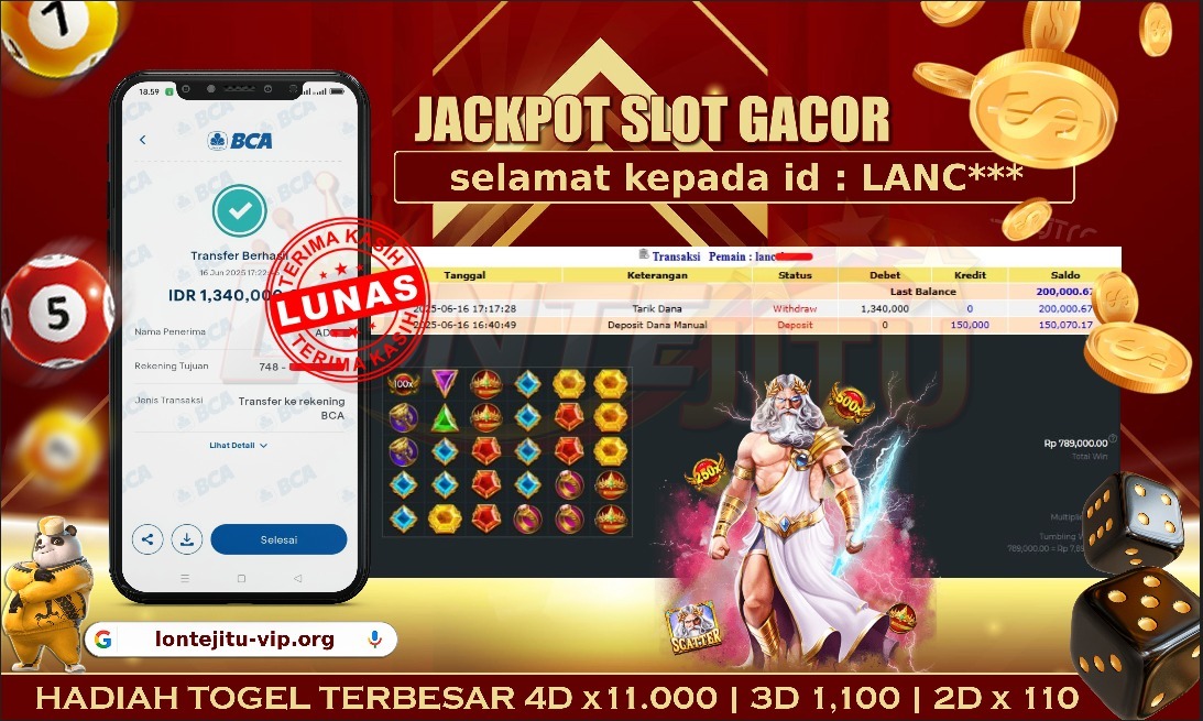 Bukti JP SLOT GATES OF OLYMPUS – Kami mengucapkan selamat kepada bossku Username ID LANC**** atas kemenangan di permainan SLOT GATES OF OLYMPUS dengan total kemenangan sebesar Rp.1,340.000,00,- Kemenangan ini yang pastinya sudah dibayar LUNAS sesuai dengan bukti ya bossku. Lontejitu nih boss, berapapun kemenangan anda akan tetap kami bayar sampai tuntas ya boss.