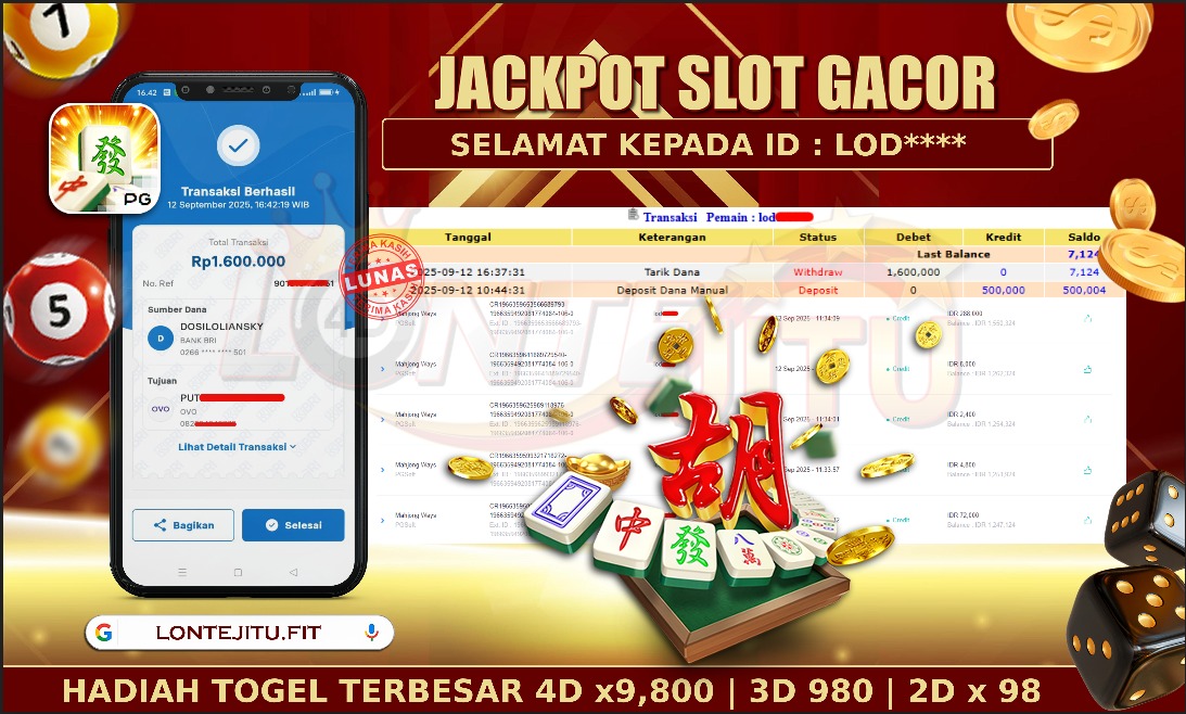 Bukti JP MAHJONG WAYS – Namun, yang kami posting ini sah dan real tanpa merekayasa yah dan hanya bertujuan untuk meningkatkan kepercayaan para member kami dan memberikan kenyamanan saat melakukan taruhan di situs kami, Jadi bosku tidak perlu khawatir BERAPAPUN KEMENANGAN KALIAN PASTI DIBAYAR LUNAS !! . Teman – teman sekalian sudah daftar di LONTEJITU belum yah..?, Jika belum jangan tunggu lagi, ayo segera daftarkan dan mainkan game SLOT GACOR kami yang sedang ONFIRE ini bisa jadi saudara / saudara salahsatu orang beruntung yang akan JP PAUS berikutnya nih!!.