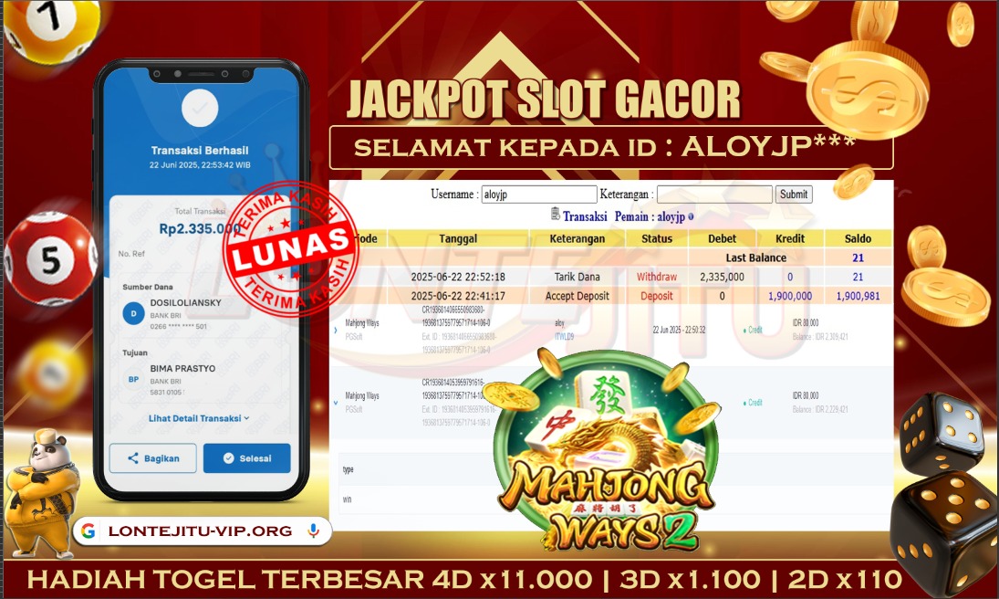 • SLOT MAHJONG WAYS – LONTEJITU 23 JUNI 2025