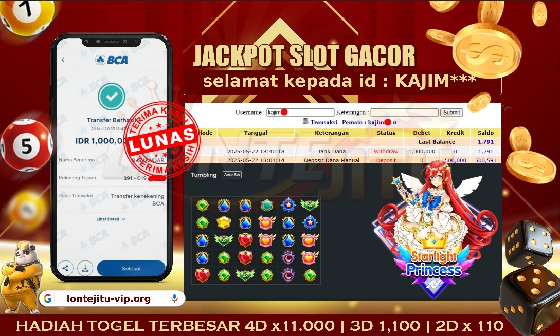 Bukti JP SLOT STARLIGHT PRINCES – Namun, yang kami posting ini sah dan real tanpa merekayasa yah dan hanya bertujuan untuk meningkatkan kepercayaan para member kami dan memberikan kenyamanan saat melakukan taruhan di situs kami, Jadi bosku tidak perlu khawatir BERAPAPUN KEMENANGAN KALIAN PASTI DIBAYAR LUNAS !! . Teman – teman sekalian sudah daftar di LONTEJITU belum yah..?, Jika belum jangan tunggu lagi, ayo segera daftarkan dan mainkan game SLOT GACOR kami yang sedang ONFIRE ini bisa jadi saudara / saudara salahsatu orang beruntung yang akan JP PAUS berikutnya nih!!.