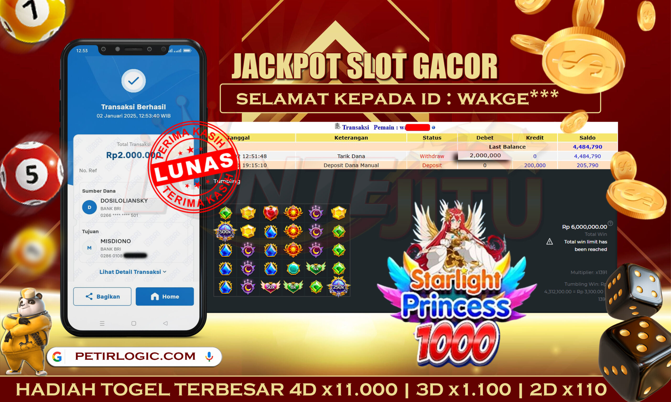 Bukti JP SLOT STARLIGHT PRINCESS 1000 – Kami mengucapkan selamat kepada bossku Username ID WAKGE*** atas kemenangan di permainan SLOT STARLIGHT PRINCESS 1000Â dengan total kemenangan sebesar Rp. 6.000.000,00,- Kemenangan ini yang pastinya sudah dibayar LUNAS sesuai dengan bukti ya bossku. Lontejitu nih boss, berapapun kemenangan anda akan tetap kami bayar sampai tuntas ya boss.Â
