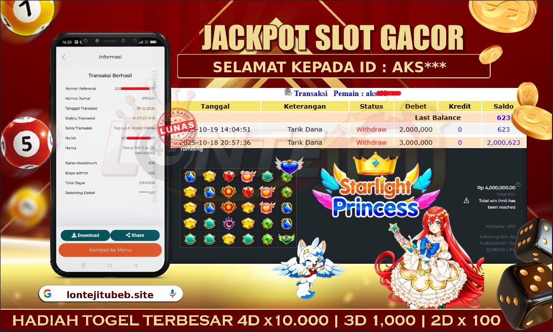 Bukti JP STARLIGHT PRINCESS – Namun, yang kami posting ini sah dan real tanpa merekayasa yah dan hanya bertujuan untuk meningkatkan kepercayaan para member kami dan memberikan kenyamanan saat melakukan taruhan di situs kami, Jadi bosku tidak perlu khawatir BERAPAPUN KEMENANGAN KALIAN PASTI DIBAYAR LUNAS !! . Teman – teman sekalian sudah daftar di LONTEJITU belum yah..?, Jika belum jangan tunggu lagi, ayo segera daftarkan dan mainkan game SLOT GACOR kami yang sedang ONFIRE ini bisa jadi saudara / saudara salahsatu orang beruntung yang akan JP PAUS berikutnya nih!!.