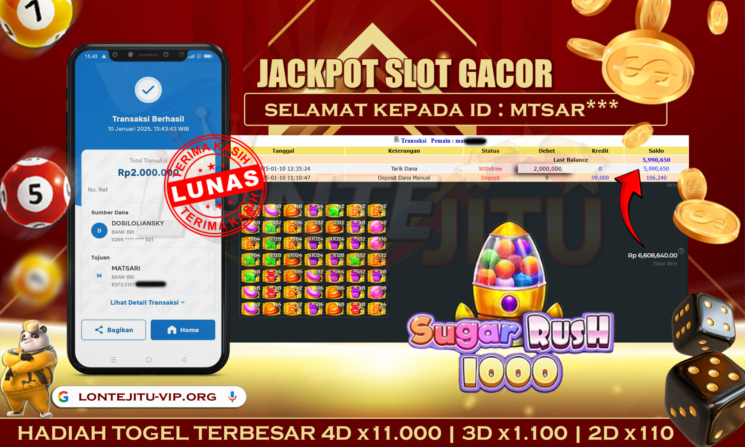 SLOT SUGAR RUSH 1000 – BUKTI JP LONTEJITU 10 JANUARI 2025