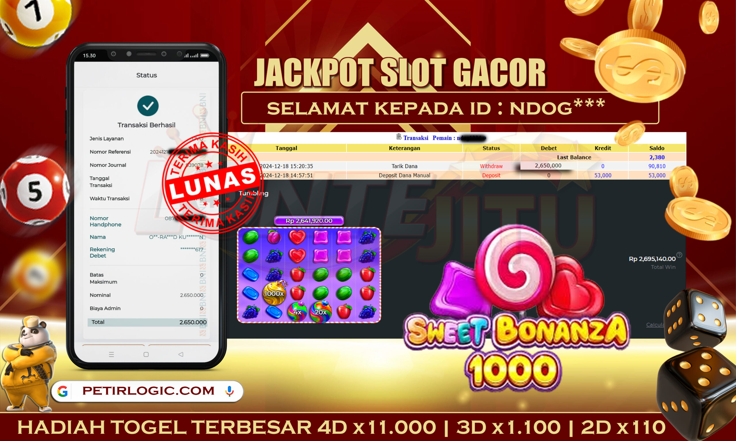 Bukti JP SLOT SWEET BONANZA 1000 – Kami mengucapkan selamat kepada bossku Username ID NDOG*** atas kemenangan di permainan SLOT SWEET BONANZA 1000Â dengan total kemenangan sebesar Rp. 2.650.000,00,- Kemenangan ini yang pastinya sudah dibayar LUNAS sesuai dengan bukti ya bossku. Lontejitu nih boss, berapapun kemenangan anda akan tetap kami bayar sampai tuntas ya boss.Â