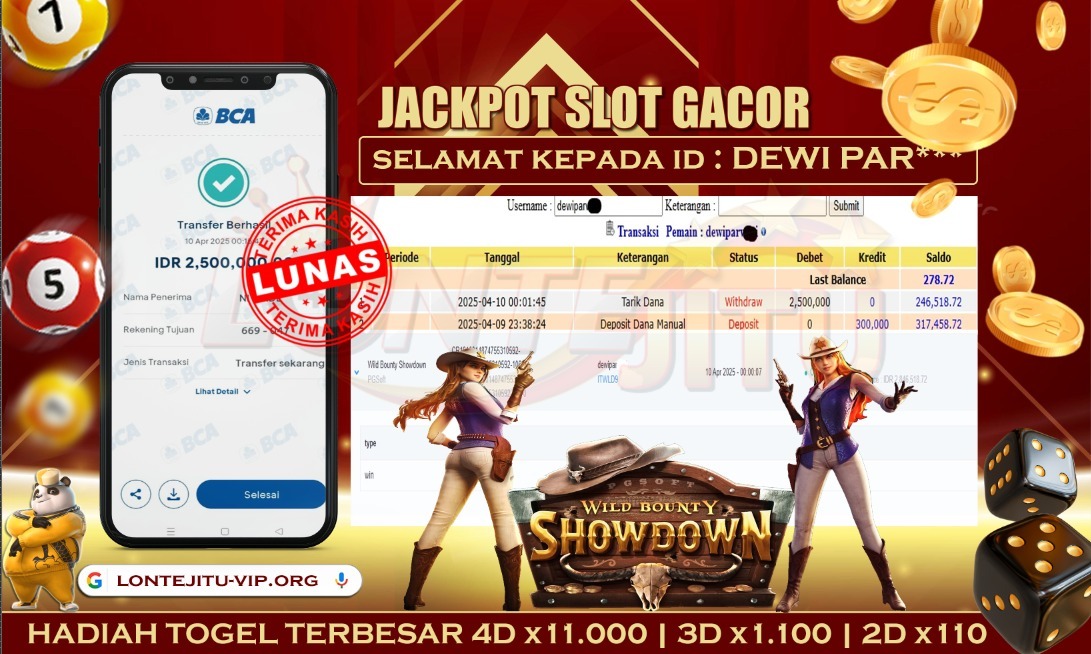 Bukti JP SLOT WILD BOUNTY SHOWDOWN – Kami mengucapkan selamat kepada bossku Username ID DEWI PAR*** atas kemenangan di permainan SLOT WILD BOUNTY SHOWDOWN dengan total kemenangan sebesar Rp.2.500.000,00,- Kemenangan ini yang pastinya sudah dibayar LUNAS sesuai dengan bukti ya bossku. Lontejitu nih boss, berapapun kemenangan anda akan tetap kami bayar sampai tuntas ya boss.