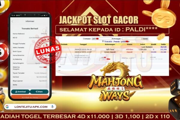 Bukti JP SLOT MAHJONG WAYS – Kami mengucapkan selamat kepada bossku Username ID ASS**** atas kemenangan di permainan SLOT MAHJONG WAYS dengan total kemenangan sebesar Rp.1, 300.000,00,- Kemenangan ini yang pastinya sudah dibayar LUNAS sesuai dengan bukti ya bossku. Lontejitu nih boss, berapapun kemenangan anda akan tetap kami bayar sampai tuntas ya boss. Disini kami mengucapkan Terimakasih…