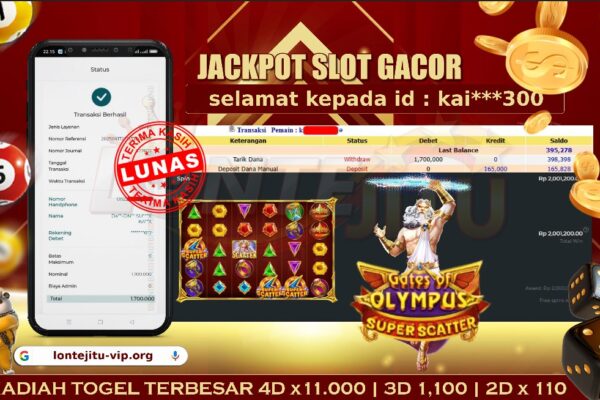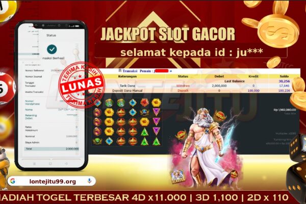Bukti JP SLOT GATES OF OLYMPUS – Kami mengucapkan selamat kepada bossku Username ID JU**** atas kemenangan di permainan SLOT GATES OF OLYMPUS dengan total kemenangan sebesar Rp. 2.000.000,00,- Kemenangan ini yang pastinya sudah dibayar LUNAS sesuai dengan bukti ya bossku. Lontejitu nih boss, berapapun kemenangan anda akan tetap kami bayar sampai tuntas ya boss. Disini…