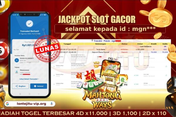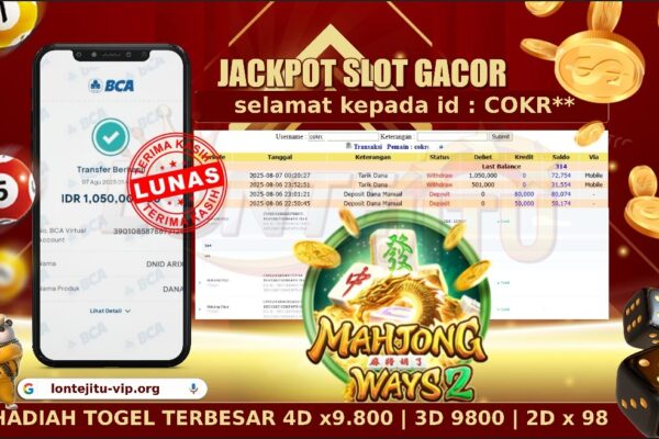 Bukti JP SLOT COCKTAIL NIGHTS – Kami mengucapkan selamat kepada bossku Username ID AL*** atas kemenangan di permainan SLOT COCKTAIL NIGHTS dengan total kemenangan sebesar Rp.1.200.000,00,- Kemenangan ini yang pastinya sudah dibayar LUNAS sesuai dengan bukti ya bossku. Lontejitu nih boss, berapapun kemenangan anda akan tetap kami bayar sampai tuntas ya boss. Disini kami mengucapkan Terimakasih telah…