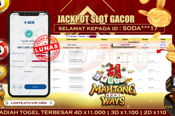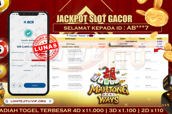 Bukti JP SLOT MAHJONG WAYS 2 – Kami mengucapkan selamat kepada bossku Username ID MAUKA**** atas kemenangan di permainan SLOT MAHJONG WAYS 2 dengan total kemenangan sebesar Rp.2,300.000,00,- Kemenangan ini yang pastinya sudah dibayar LUNAS sesuai dengan bukti ya bossku. Lontejitu nih boss, berapapun kemenangan anda akan tetap kami bayar sampai tuntas ya boss. Disini kami mengucapkan Terimakasih…
