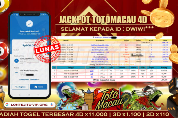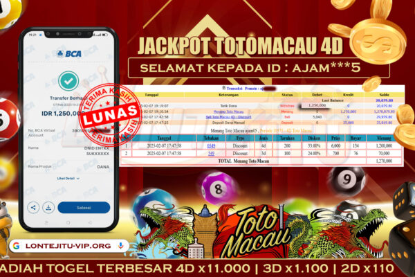 Bukti JP TOGEL SYDNEY LOTTO – Kami mengucapkan Selamat kepada bossku dengan Username ID BU*** atas kemenangannya di permainan TOGEL SYDNEY LOTTO dengan total kemenangan sebesar Rp.1.480.000,00,- Kemenangan ini yang pastinya sudah dibayar LUNAS sesuai dengan bukti ya bossku. Lontejitu nih boss, berapapun kemenangan anda akan tetap kami bayar sampai tuntas ya boss. Disini kami mengucapkan Terimakasih kepada…
