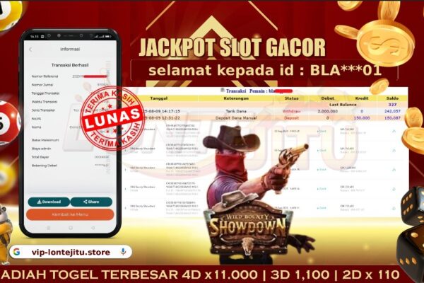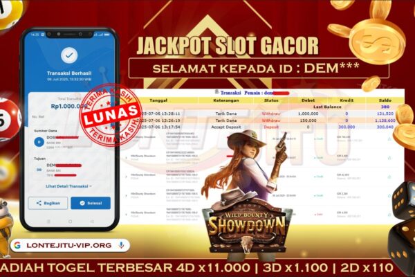 Bukti JP SLOT WILD BOUNTY SHOWDOWN – Kami mengucapkan selamat kepada bossku Username ID EB***** atas kemenangan di permainan SLOT WILD BOUNTY SHOWDOWN dengan total kemenangan sebesar Rp.1,500.000,00,- Kemenangan ini yang pastinya sudah dibayar LUNAS sesuai dengan bukti ya bossku. Lontejitu nih boss, berapapun kemenangan anda akan tetap kami bayar sampai tuntas ya boss. Disini kami mengucapkan Terimakasih…