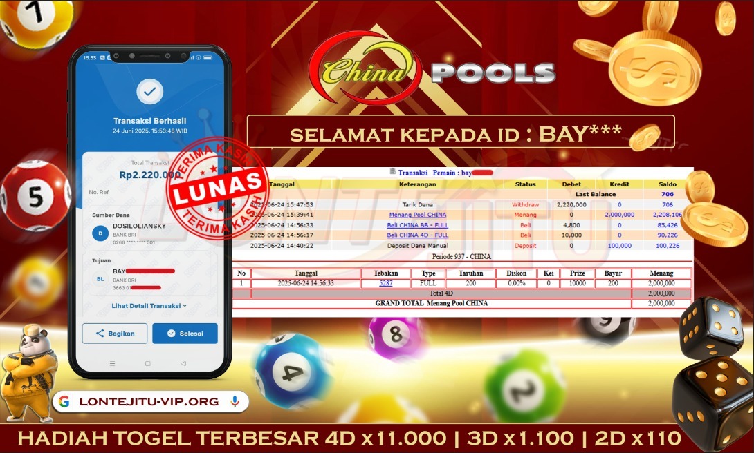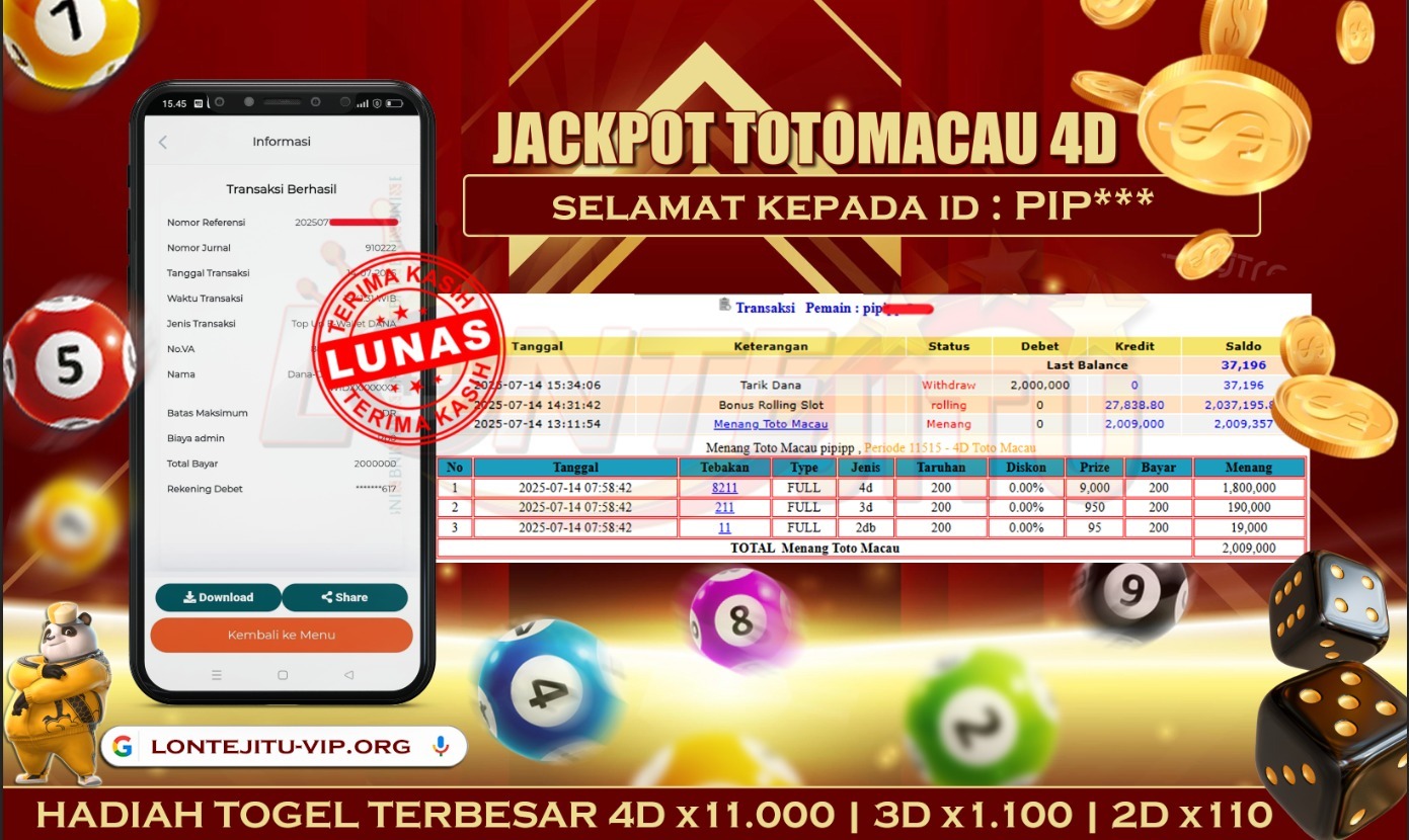 Bukti JP TOGEL CAMBODIA POOLS – Namun, yang kami posting ini sah dan real tanpa merekayasa yah dan hanya bertujuan untuk meningkatkan kepercayaan para member kami dan memberikan kenyamanan saat melakukan taruhan di situs kami, Jadi bosku tidak perlu khawatir BERAPAPUN KEMENANGAN KALIAN PASTI DIBAYAR LUNAS !! . Teman – teman sekalian sudah daftar di LONTEJITU belum yah..?, Jika belum jangan tunggu lagi, ayo segera daftarkan dan mainkan game SLOT GACOR kami yang sedang ONFIRE ini bisa jadi saudara / saudara salahsatu orang beruntung yang akan JP PAUS berikutnya nih!!.